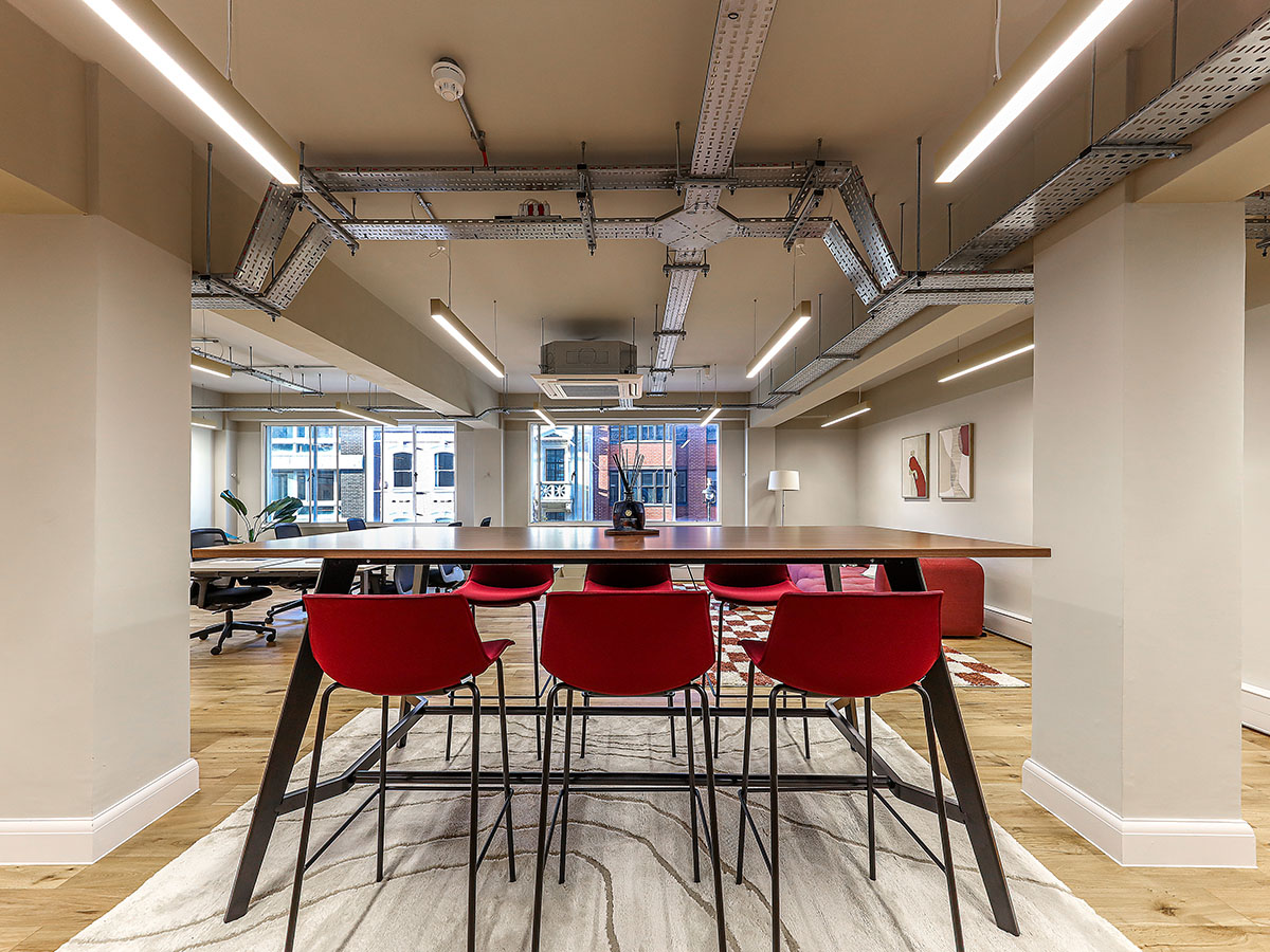 The Second floor was completed as a fully furnished, tenant-ready suite with a glazed meeting room and flexible working spaces, setting a new benchmark across the estate.